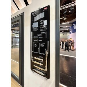 Realizzati in Dibond nero, stampati con inchiostro bianco e quadricromia, offrono un supporto rigido e strutturalmente solido per il montaggio della ferramenta.