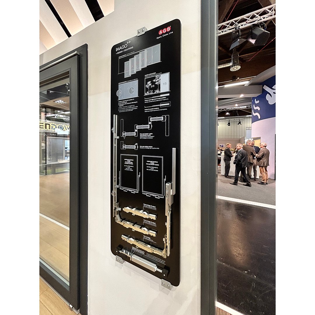 Ogni pannello fornisce informazioni tecniche specifiche sui prodotti installati sopra di esso, contribuendo alla suddivisione funzionale dello stand.