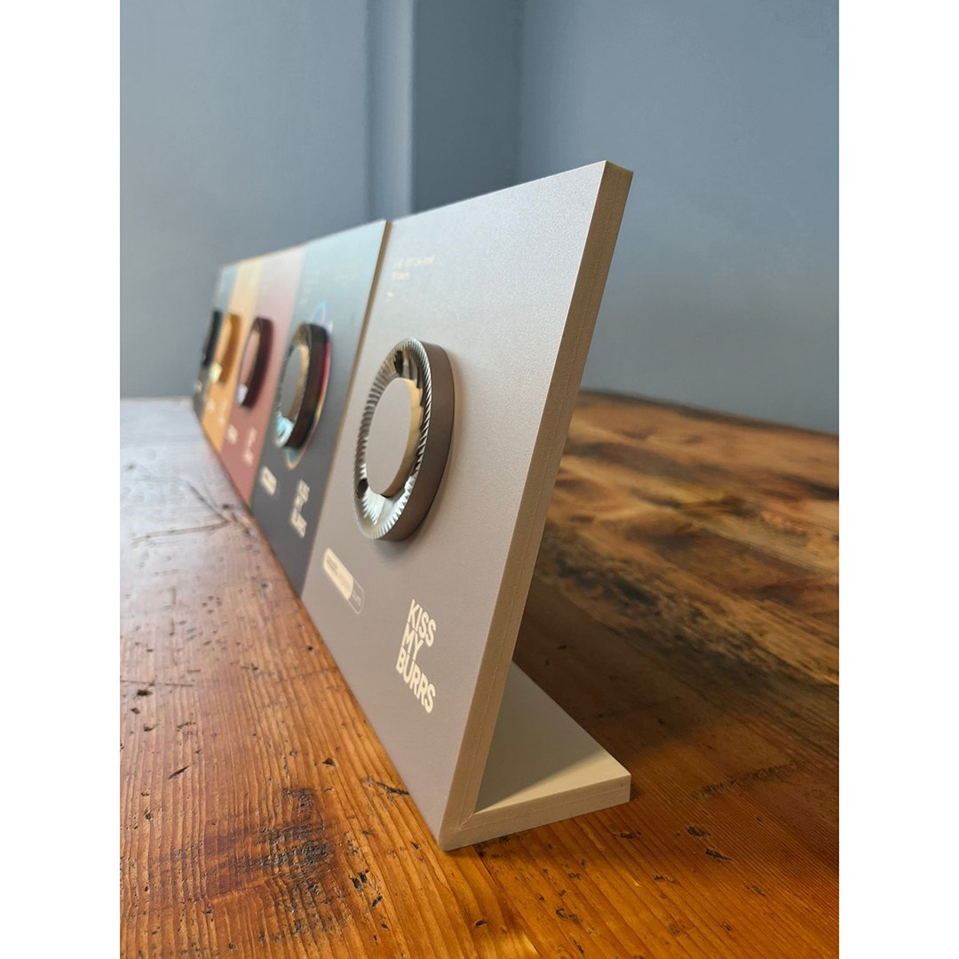 Ogni modulo ospita una macina specifica con relative informazioni tecniche, facilitando la distinzione tra modelli altrimenti simili.