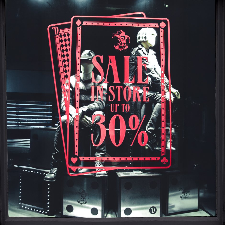 Per la stessa campagna sono stati sviluppati anche prespaziati per le vetrine, applicati internamente al vetro.