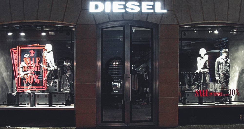 Vetrina realizzata per Diesel, composta da diversi elementi in alluminio stampato digitalmente. Le strutture sono progettate per essere utilizzate sia in vetrina sia all’interno del punto vendita, garantendo continuità visiva e coerenza comunicativa.