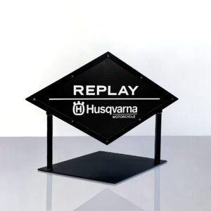 Elemento da tavolo sviluppato per una collaborazione tra brand, pensato per comunicare l’identità condivisa. Realizzato in ferro e forex stampato, con struttura semplice e resistente. Facile da montare e progettato per un imballo compatto. Una soluzione pensata per garantire praticità, durabilità e immediatezza comunicativa.