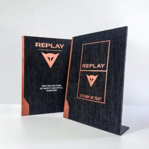 Serie di elementi sviluppati dalla collaborazione tra Replay e Dainese, pensati per creare un linguaggio visivo condiviso.